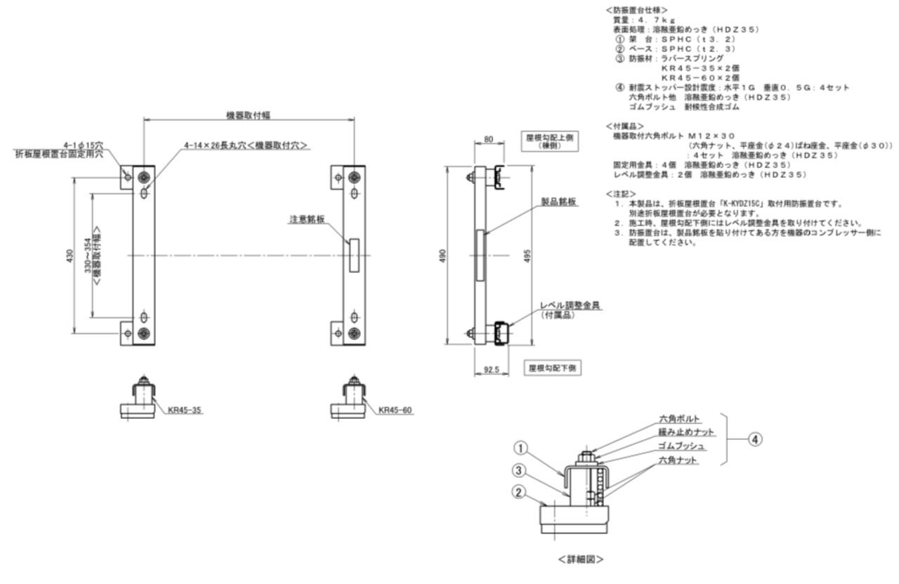 ※本製品は、折板屋根置台「K-KYDZ15C」取付用防振置台です。